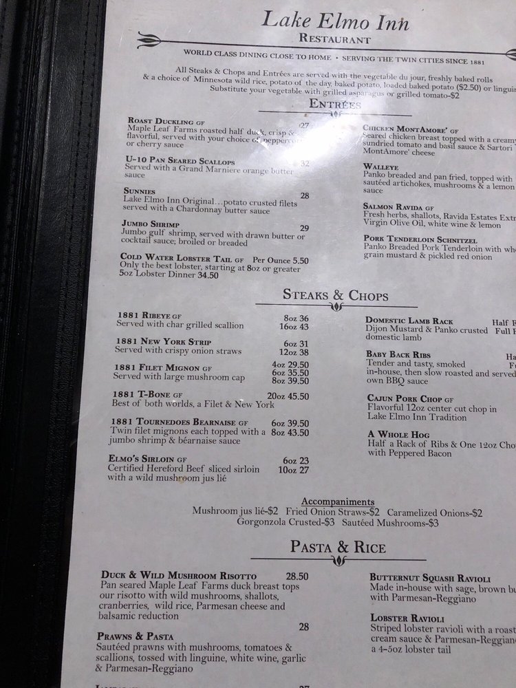Lake Elmo Inn Menu